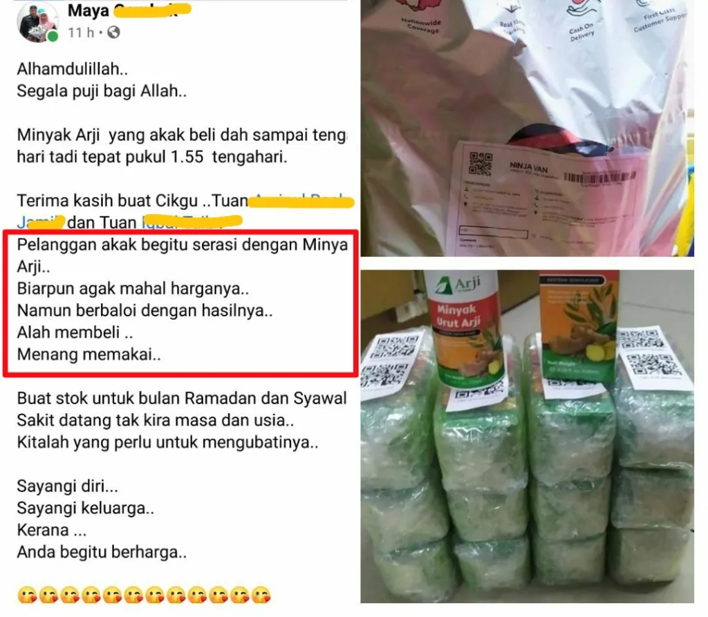 PELANGGAN DIBAWAH DAH DAPAT RASAKAN PERUBAHAN SELEPAS MENGGUNAKAN MINYAK URUT ARJI DAN TIDAK MENGGUNAKAN MINYAK ATAU KRIM LAIN.