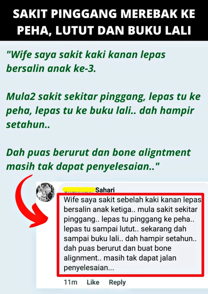 Ini buktinya, sakit pinggangnya telah merebak hingga ke bahagian kaki.