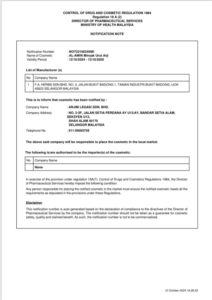 Mendapat kelulusan Kementerian Kesihatan Malaysia (KKM)
